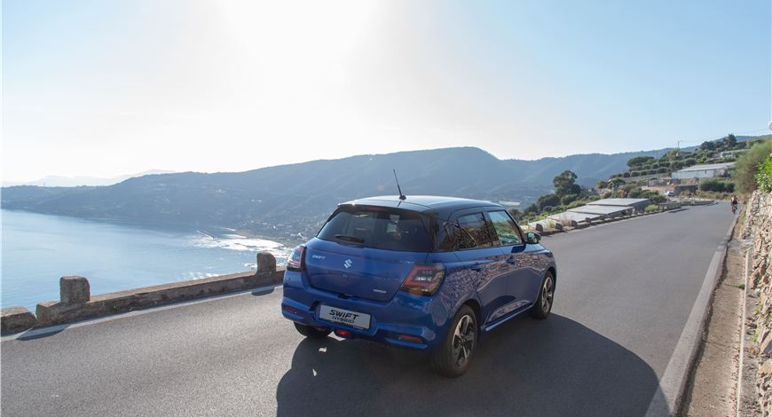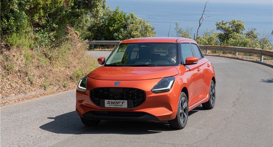 La nuova Swift Hybrid rinnova la sua identità con linee moderne e morbide che ne disegnano il profilo, fari Full LED e vetri dal disegno avvolgente con i nuovi montanti in Piano Black per un effetto tetto sospeso.
